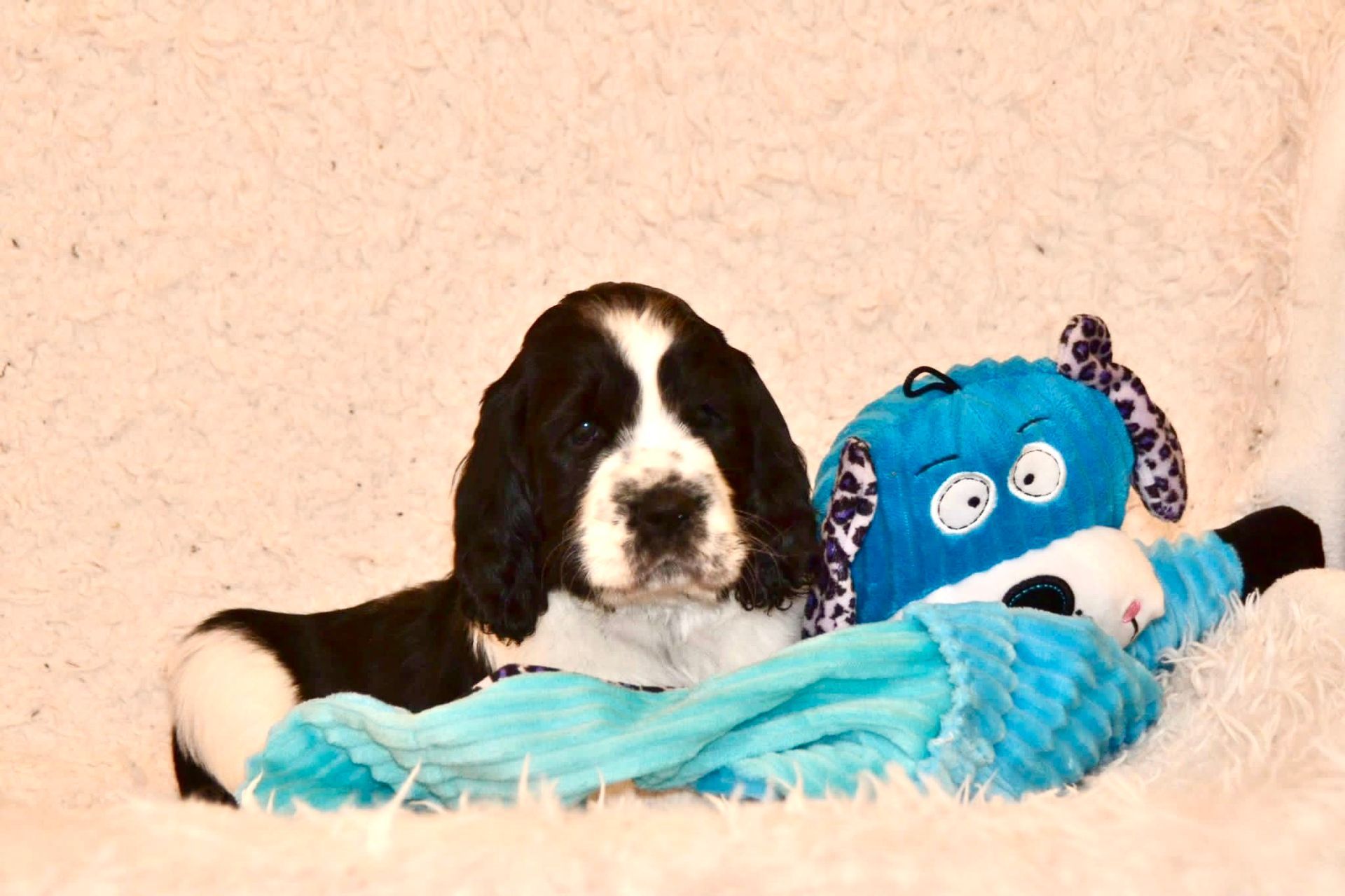 Bisher waren die Springer Spaniel in unserem Leben immer braun weiß, nun ein schwarzweiße……… Ich blickte in ihre wunderschönen dunkelbraunen Augen und es war um mich geschehen.